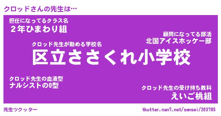| 意味不明あだ名 | 『ペロリンクロッド』『永久保存クロッド』 |