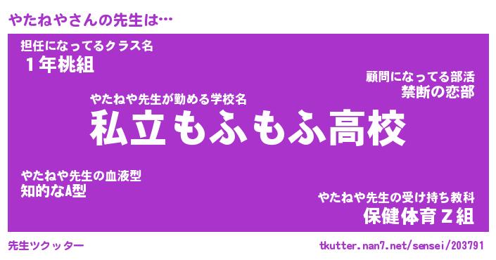 | 意味不明あだ名 | 『ペロリンやたねや』『永久保存やたねや』 |