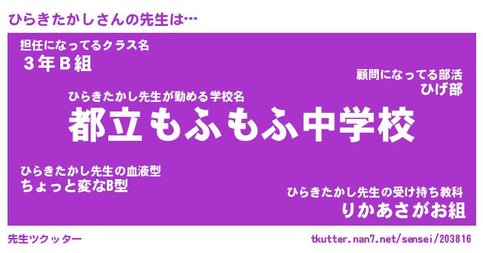 | 肩書あだ名 | 『ひらきたかし店長』『ひらきたかし担任』 |
