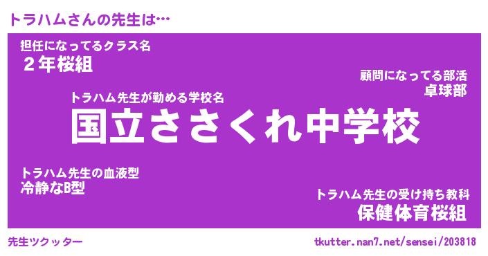 | 意味不明あだ名 | 『ペロリントラハム』『永久保存トラハム』 |