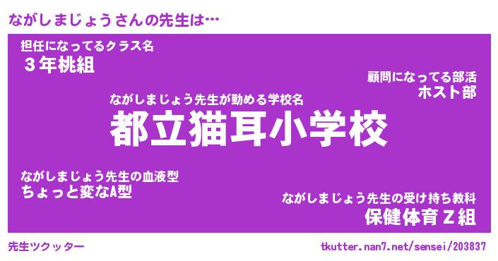 | 女子向けラノベタイトル風あだ名 | 『ながしまじょう姫と円卓の騎士』 |