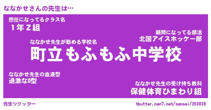 | ヘコむあだ名 | 『ななにゅー』『つくし』『ななっぺ』 |