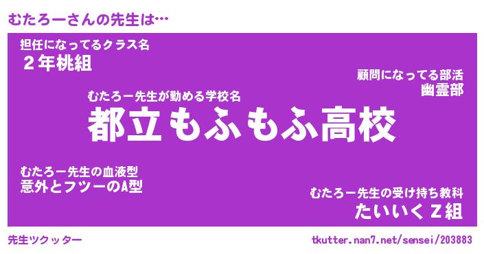 | 意味不明あだ名 | 『ペロリンむたろー』『永久保存むたろー』 |