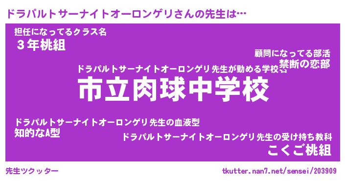 | 欧米人風あだ名 | 『マイケルドラパルトサーナイトオーロンゲリ』 |
