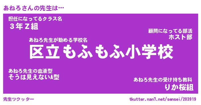 | 肩書あだ名 | 『あねろ店長』『あねろ総理大臣』 |