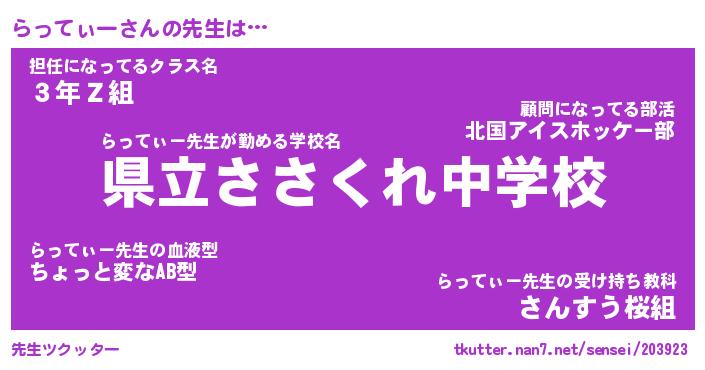| ファンタジー風あだ名 | 『ラッフェル』『エターナルラッティーー』 |