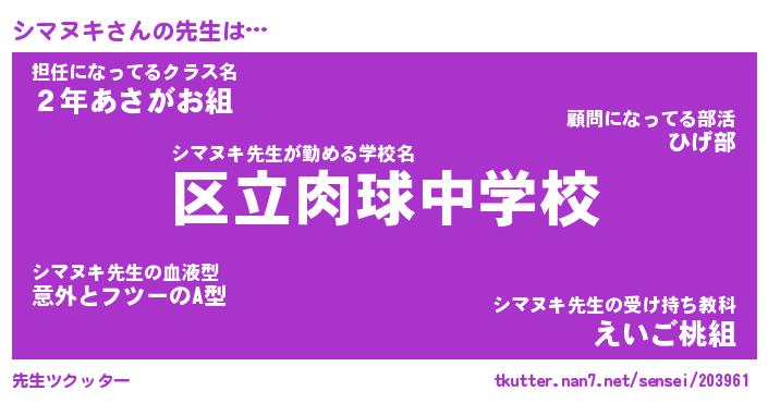 | ファンタジー風あだ名 | 『シマフェル』『エターナルシマヌキー』 |