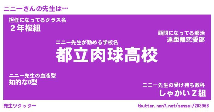 | 意味不明あだ名 | 『ペロリンニニー』『ニニーフォーエバー』 |