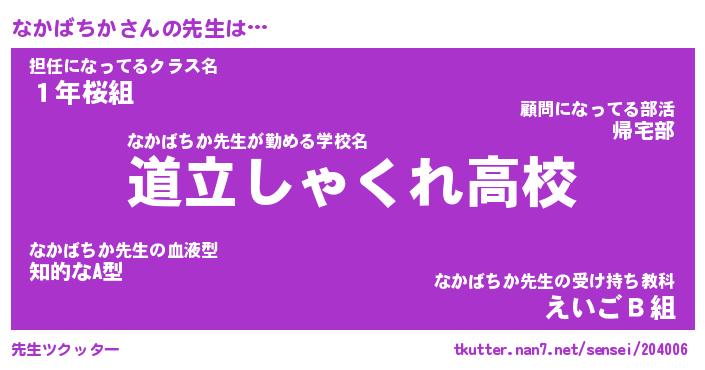 | 恥ずかしいあだ名 | 『プリティーなかばちか』『なかっちょ』 |