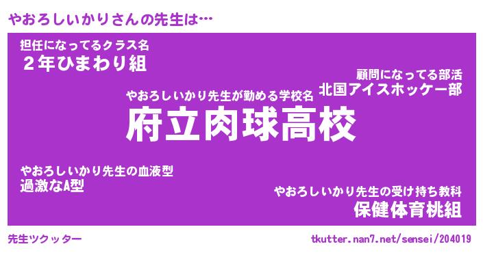 | ヘコむあだ名 | 『やおふぇ~』『なまこ酢』 |