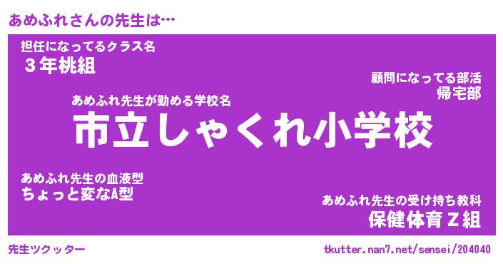 | 意味不明あだ名 | 『ペロリンあめふれ』『永久保存あめふれ』 |
