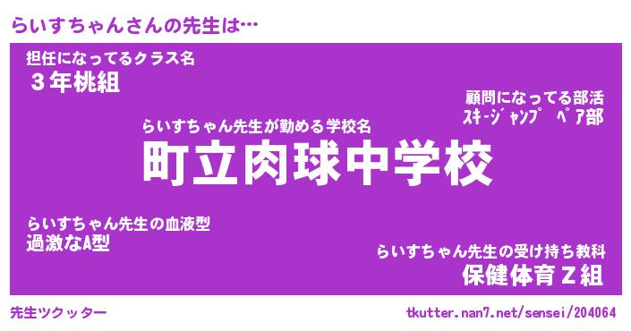 | ヘコむあだ名 | 『らいふぇ~』『酢こんぶ』『らいを』 |