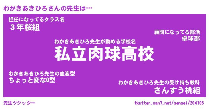 | 意味不明あだ名 | 『ペロリンわかきあきひろ』 |