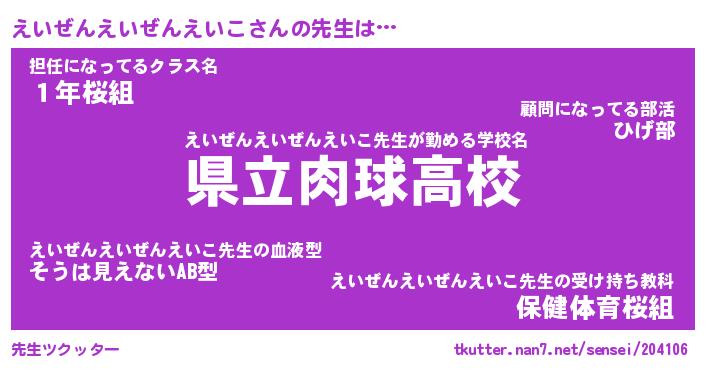 | 欧米人風あだ名 | 『マイケルえいぜんえいぜんえいこ』 |