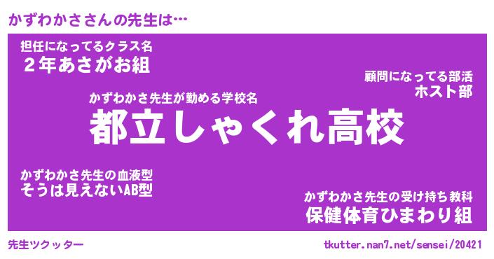 | 肩書あだ名 | 『かずわかさ御曹司』『かずわかさ大統領』 |