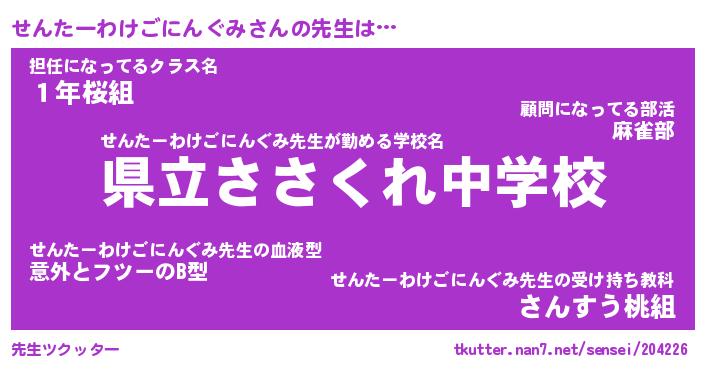 | 男性向けラノベタイトル風あだ名 | 『せんたーわけごにんぐみの憂鬱』 |