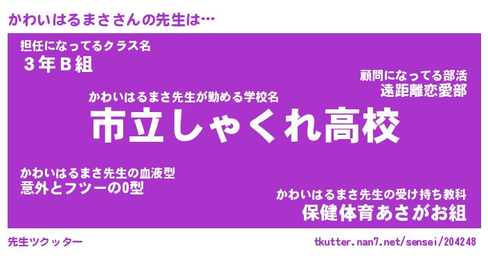 | 肩書あだ名 | 『かわいはるまさ御曹司』 |