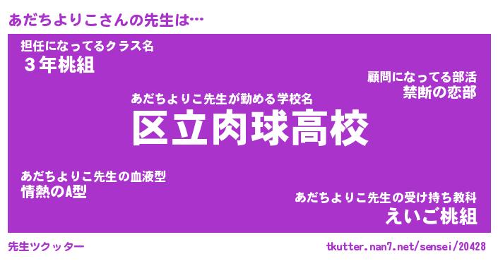 | ポケモン風あだ名 | 『アダチュウ』『アダチダネ』 |