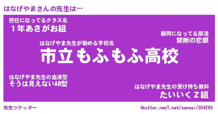 | ファンタジー風あだ名 | 『ハナフェル』『エターナルハナゲヤマー』 |