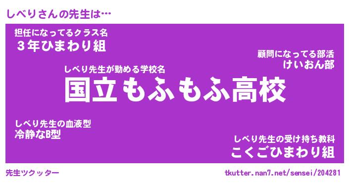 | 男性向けラノベタイトル風あだ名 | 『しべりの憂鬱』 |