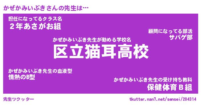 | ポケモン風あだ名 | 『カゼチュウ』『カゼカダネ』 |