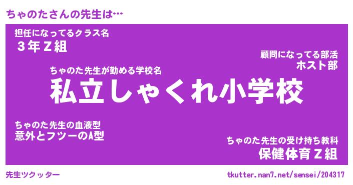 | 欧米人風あだ名 | 『マイケルちゃのた』『ウサインちゃのた』 |
