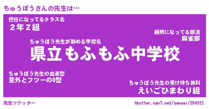 | ファンタジー風あだ名 | 『チュフェル』『エターナルチュウボウー』 |
