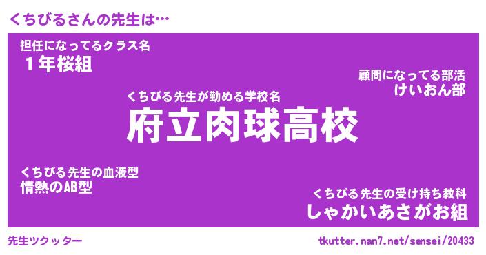 | ファンタジー風あだ名 | 『クチフェル』『エターナルクチビルー』 |