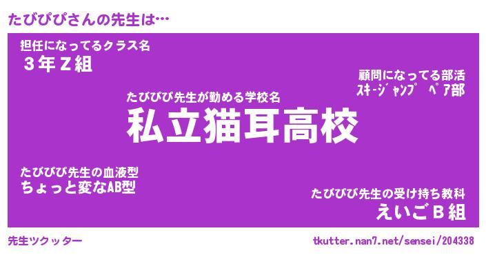 | 意味不明あだ名 | 『ペロリンたびぴぴ』『永久保存たびぴぴ』 |