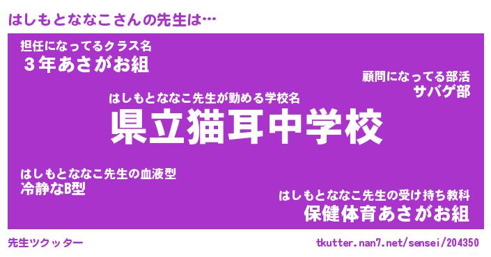 | ピコ太郎風あだ名 | 『ハコ太郎』『ピハ五郎』『ハシ四郎』 |