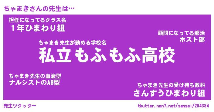 | 意味不明あだ名 | 『ペロリンちゃまき』『永久保存ちゃまき』 |