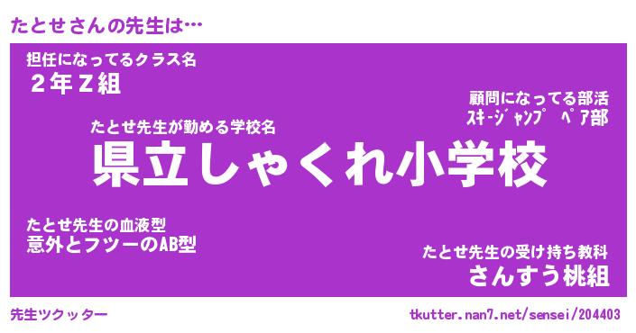| 欧米人風あだ名 | 『マイケルたとせ』『たとせクリステル』 |