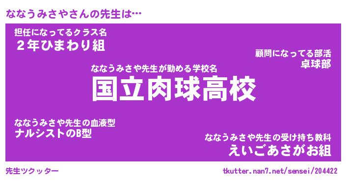 | ヘコむあだ名 | 『ななふぇ~』『なまこ酢』 |