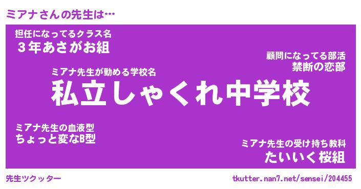 | ファンタジー風あだ名 | 『ミアフェル』『エターナルミアナー』 |
