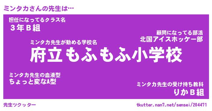 | 意味不明あだ名 | 『ペロリンミンタカ』『永久保存ミンタカ』 |