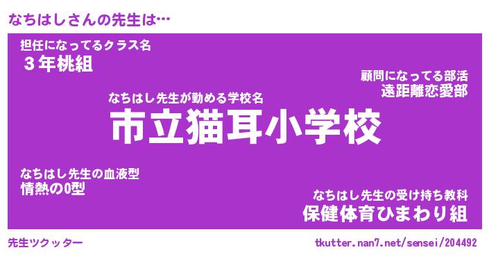 | 意味不明あだ名 | 『ペロリンなちはし』『永久保存なちはし』 |