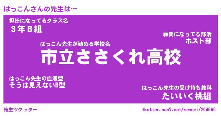 | 意味不明あだ名 | 『ペロリンはっこん』『永久保存はっこん』 |