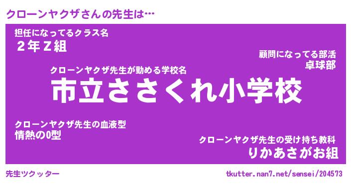 | 男性向けラノベタイトル風あだ名 | 『クローンヤクザの憂鬱』 |