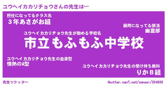| 欧米人風あだ名 | 『マイケルユウヘイカカリチョウ』 |