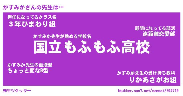 | 意味不明あだ名 | 『ペロリンかすみか』『永久保存かすみか』 |