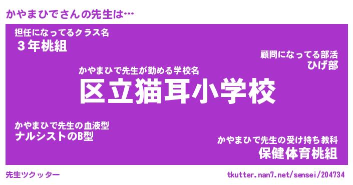 | 自動車の名前っぽいあだ名 | 『カヤティマ』『カクア』『カント』 |