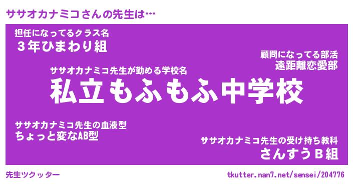 | ポケモン風あだ名 | 『ササチュウ』『ササオダネ』 |