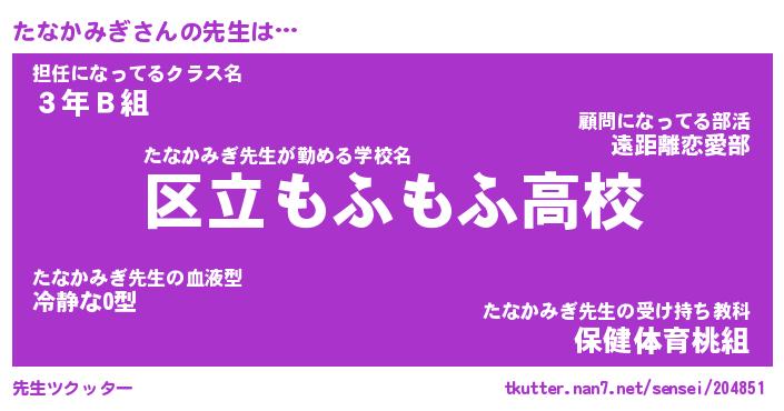 | ポケモン風あだ名 | 『タナチュウ』『タナカダネ』 |