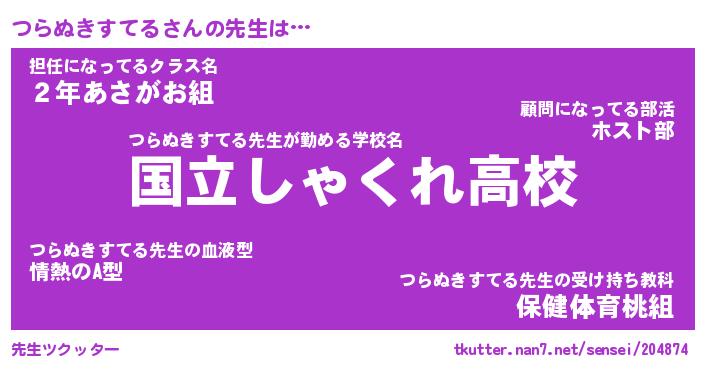 | 恥ずかしいあだ名 | 『プリティーつらぬきすてる』『つらちん』 |