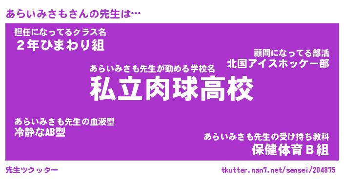 | ヘコむあだ名 | 『あらふぇ~』『なまこ酢』『あらお』 |