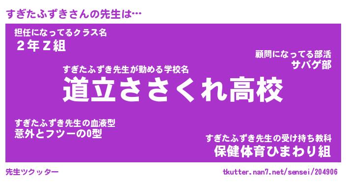 | ヒーロー風カッコイイあだ名 | 『スーパースギタフズキ』『暗黒騎士スギ』 |