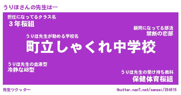 | ファンタジー風あだ名 | 『ウリフェル』『エターナルウリホー』 |