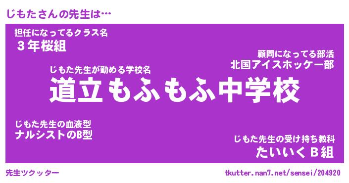 | ヘコむあだ名 | 『じもにゅー』『豆乳』『じもお』 |