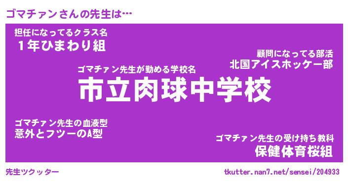 | ファンタジー風あだ名 | 『ゴマフェル』『エターナルゴマチァンー』 |