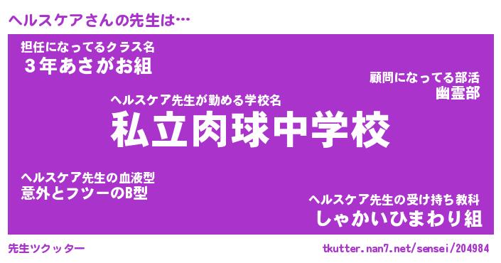 | ファンタジー風あだ名 | 『ヘルフェル』『エターナルヘルスケアー』 |
